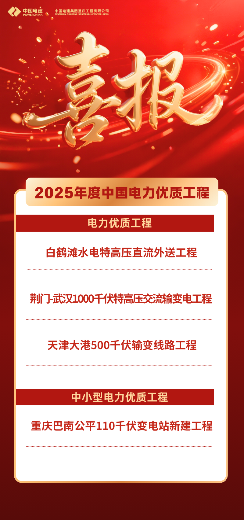 中國(guó)電建重慶工程有限公司成立于1952年,是中國(guó)電力建設(shè)集團(tuán)有限公司全資子公司,公司業(yè)務(wù)涵蓋火電、輸變電、工業(yè)與民用建筑、風(fēng)電、光伏電、環(huán)保、市政公用工程等領(lǐng)域,是全國(guó)最大的電力建筑安裝綜合施工企業(yè)之一...